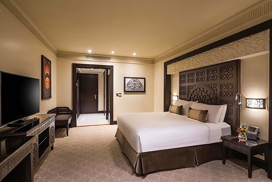 This suite features a seating area with a flat-screen TV and a mini-bar with a Nespresso machine.